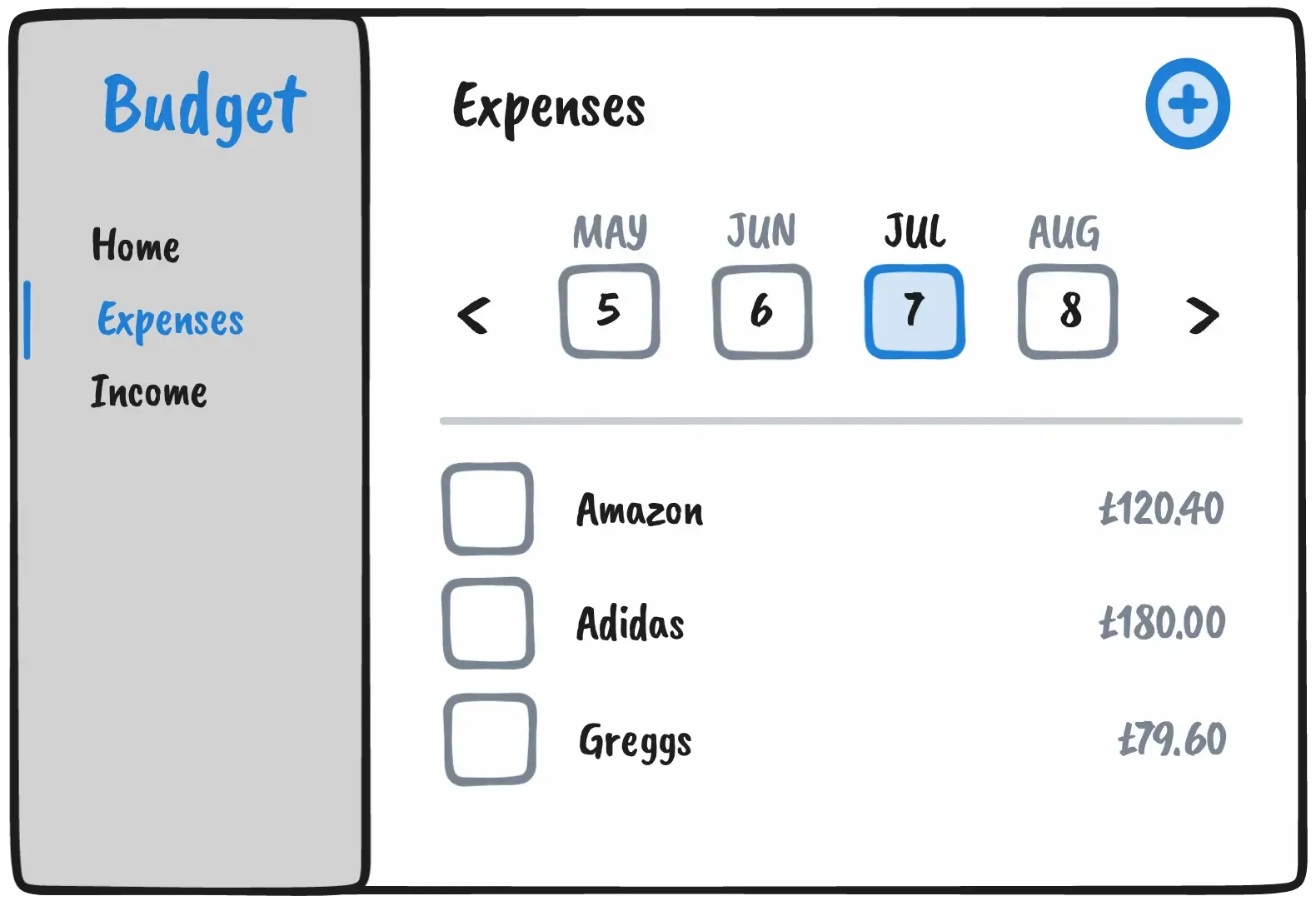 For example, clicking an “add” button may open up a modal with a form to fill out the initial values for a new expense.